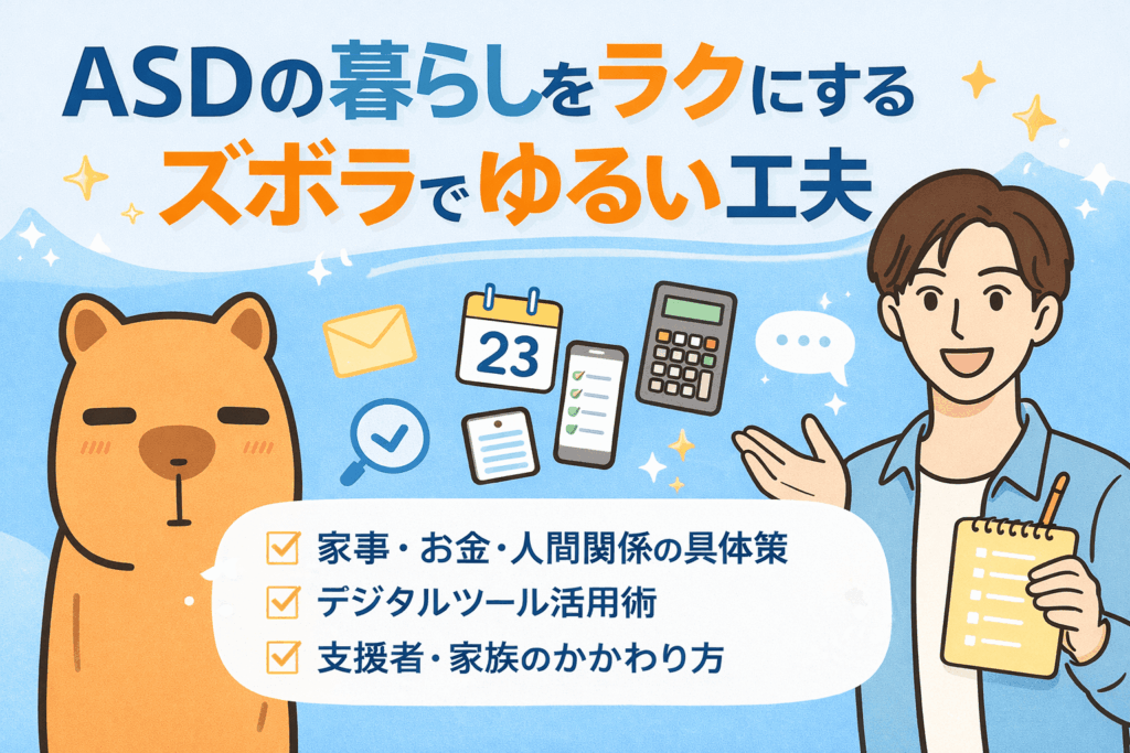 「ASD(自閉スペクトラム症)の特性があっても、自立した暮らしはできるのか…?」 「一人暮らしや仕事、家事が続かない・しんどい」 そんな不安やモヤモヤを抱えている... -