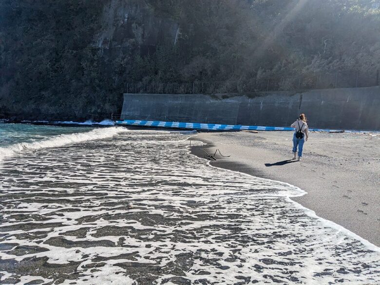 日の出浜では、彼女が夢中になってシーグラス探し。