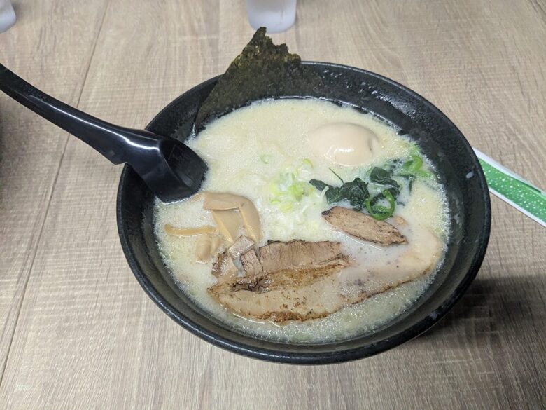僕は豚骨醤油ラーメン、彼女は醤油ラーメンを注文。
